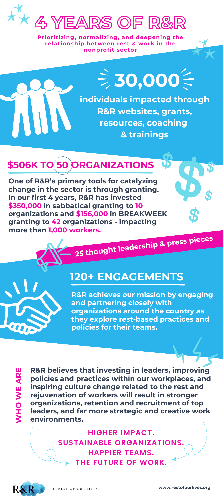 This year's snapshot of R&R’s impact to date shows how we've made a significant impact in ways we couldn't have imagined when we started normalizing rest as infrastructure.